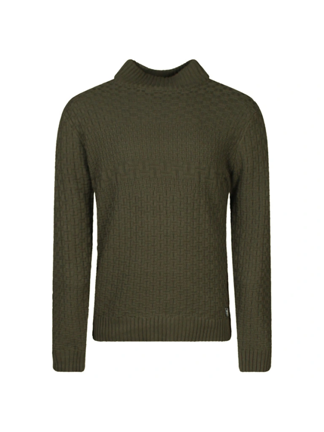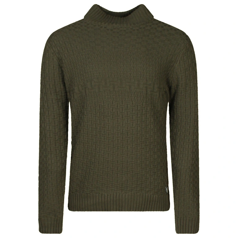 Warme dikke katoenen trui van Stonecast met een fraai patroon in de stof. Deze trui heeft een omsluitende hals.