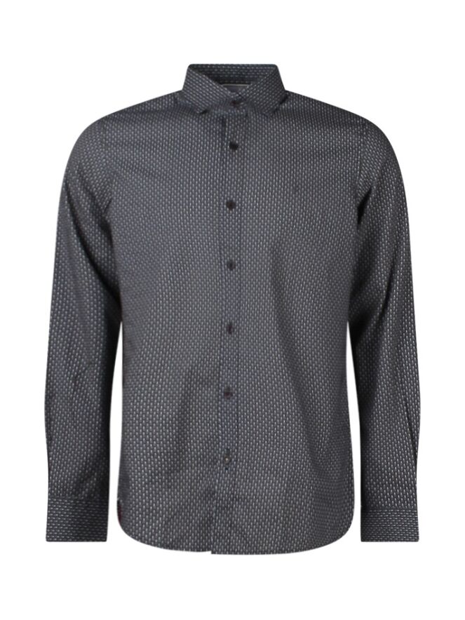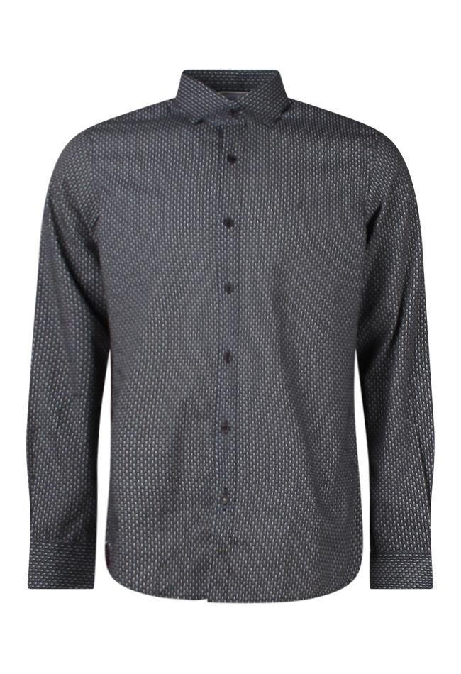 Overhemd met klein blokmotief, op de borst zit een kleine borduring.