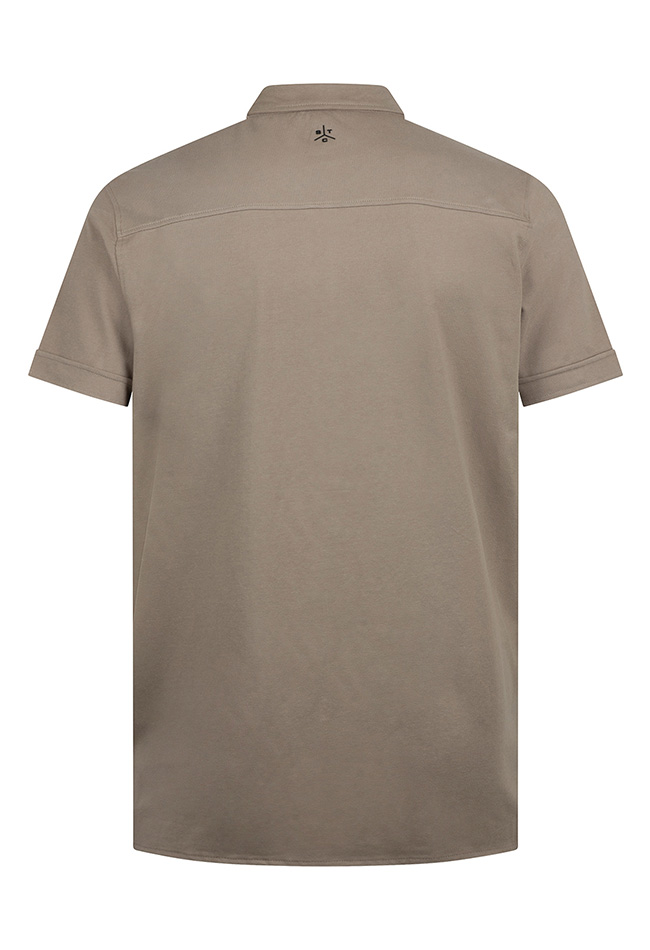 Stijlvolle herenblouse met korte mouwen, uitgevoerd in een comfortabele katoen-polyester-elastaan piquékwaliteit met een subtiele structuur voor een moderne uitstraling. De contrasterende knopen geven de blouse een eigentijds en speels detail.