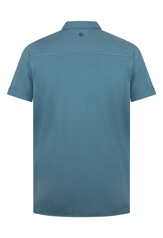 Stijlvolle herenblouse met korte mouwen, uitgevoerd in een comfortabele katoen-polyester-elastaan piquékwaliteit met een subtiele structuur voor een moderne uitstraling. De contrasterende knopen geven de blouse een eigentijds en speels detail.