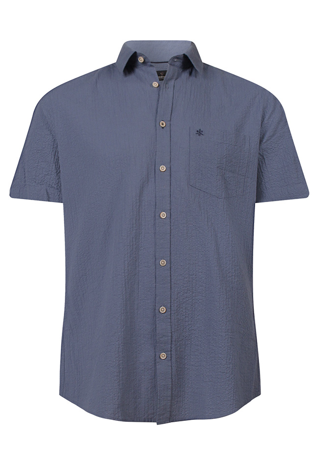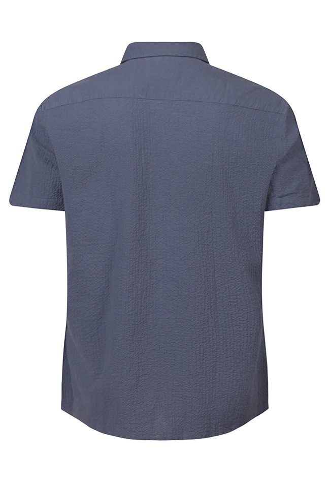 Comfortabele herenblouse met korte mouwen en een moderne, casual uitstraling. Gemaakt van een lichtgewicht crinkle-materiaal met katoenmix, waardoor de blouse luchtig draagt en weinig kreukt. Voorzien van een praktische borstzak als subtiel detail. Ideaal voor warme dagen en makkelijk te combineren met een jeans, chino of short voor een relaxte maar verzorgde look.