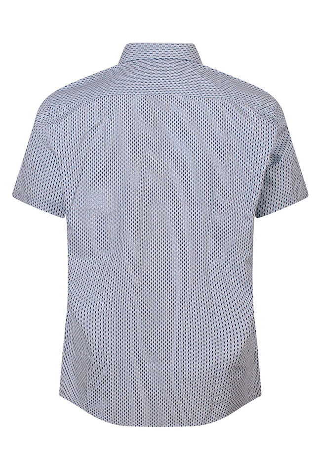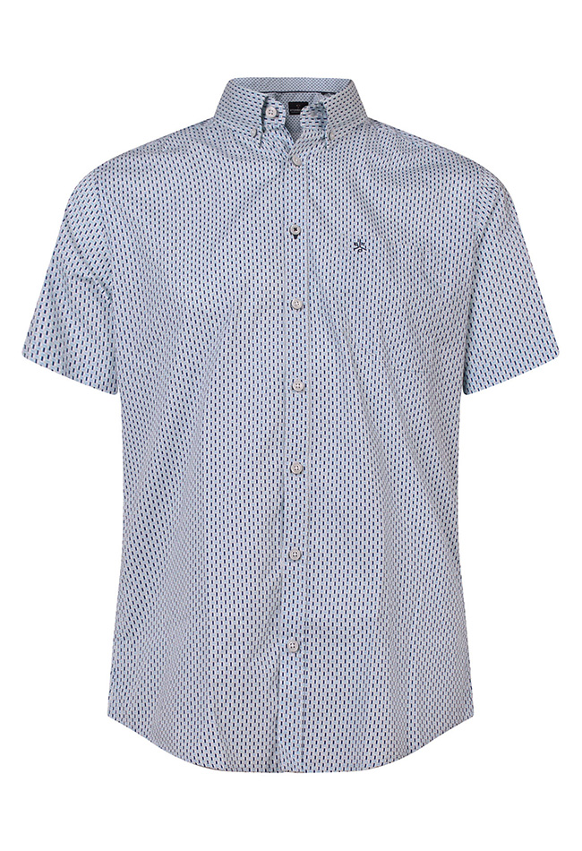 Stijlvolle herenblouse met korte mouwen en een subtiel minimaldessin voor een moderne en ingetogen uitstraling. Voorzien van een button-down kraag die zorgt voor een nette afwerking en een praktische borstzak als detail. Gemaakt van comfortabel en luchtig materiaal, ideaal voor warmere dagen. Perfect te combineren met een jeans, chino of short voor een verzorgde en casual look.