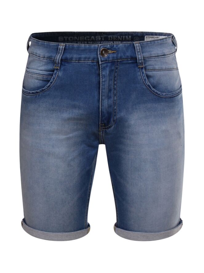 5-pocket sweatdenim short met een omslag aan de onderkant.