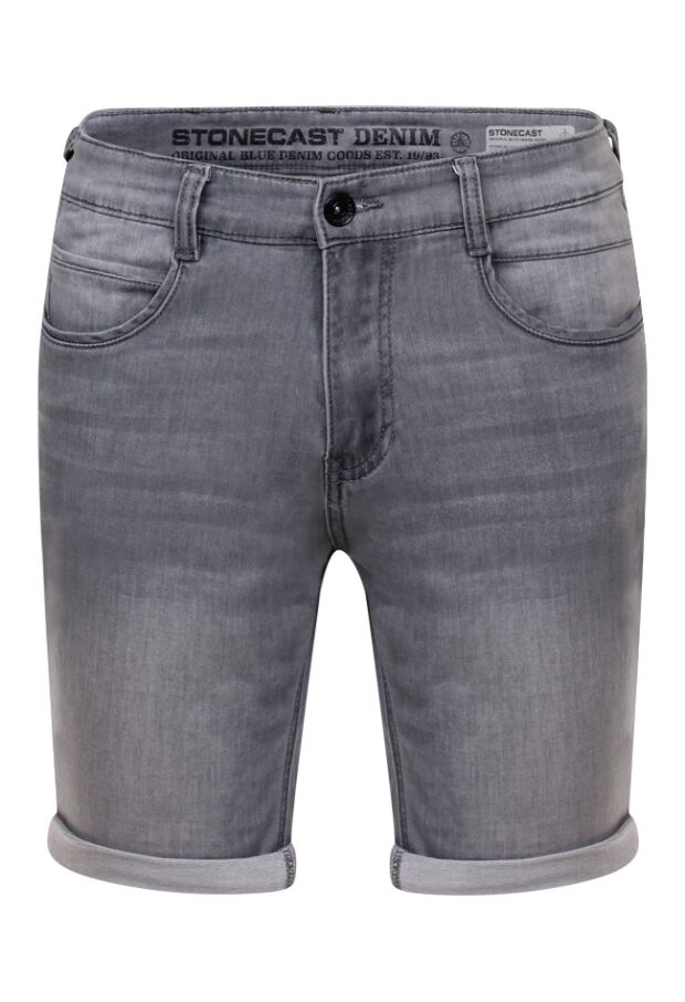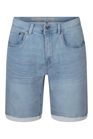 5-pocket sweatdenim short met een omslag aan de onderkant.