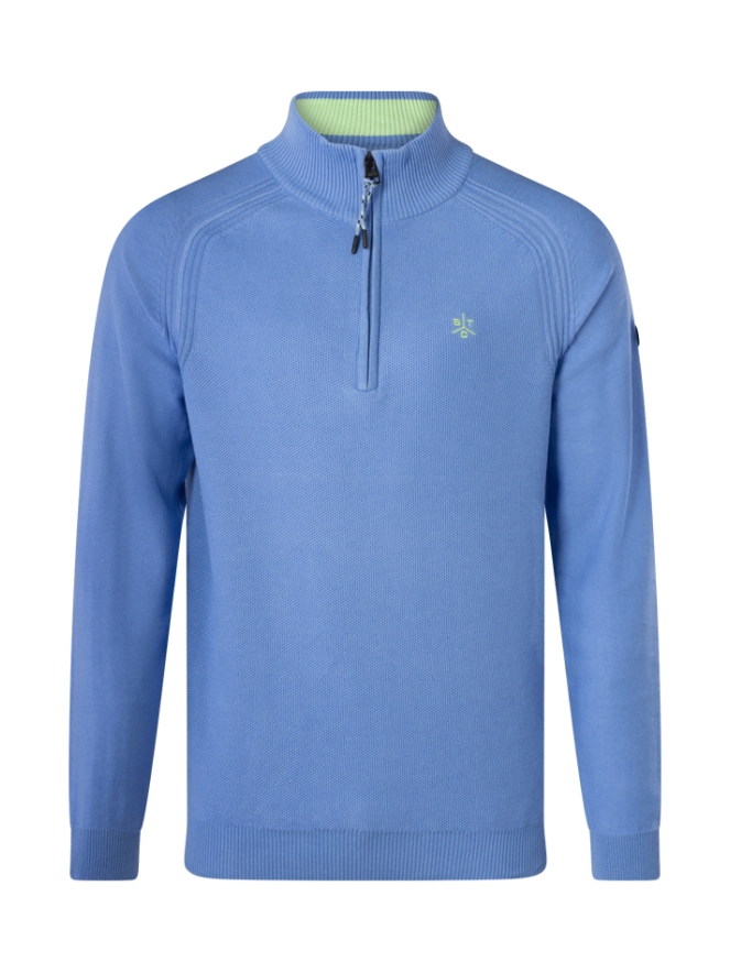 Deze zomerse pullover is een wat dunnere variant en uitermate geschikt voor het voorjaar of een frisse zomerse dag. In twee frisse kleuren verkrijgbaar. Met contrasterende kleur in het logo en de binnenkant van de kraag.