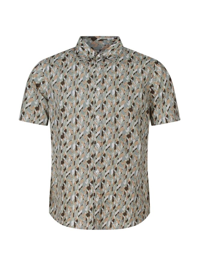 Stijlvol en luchtig: dit Stonecast overhemd voor heren is perfect voor de warmere seizoenen. Gemaakt van 100% katoen met een linnenlook, biedt dit overhemd optimaal draagcomfort en een moderne uitstraling. Het grafische dessin geeft een eigentijdse twist, ideaal voor zowel casual als feestelijke gelegenheden. Voorzien van een klassieke kraag, korte mouwen en een nette knoopsluiting. Draag het op een jeans of chino voor een complete zomerlook.