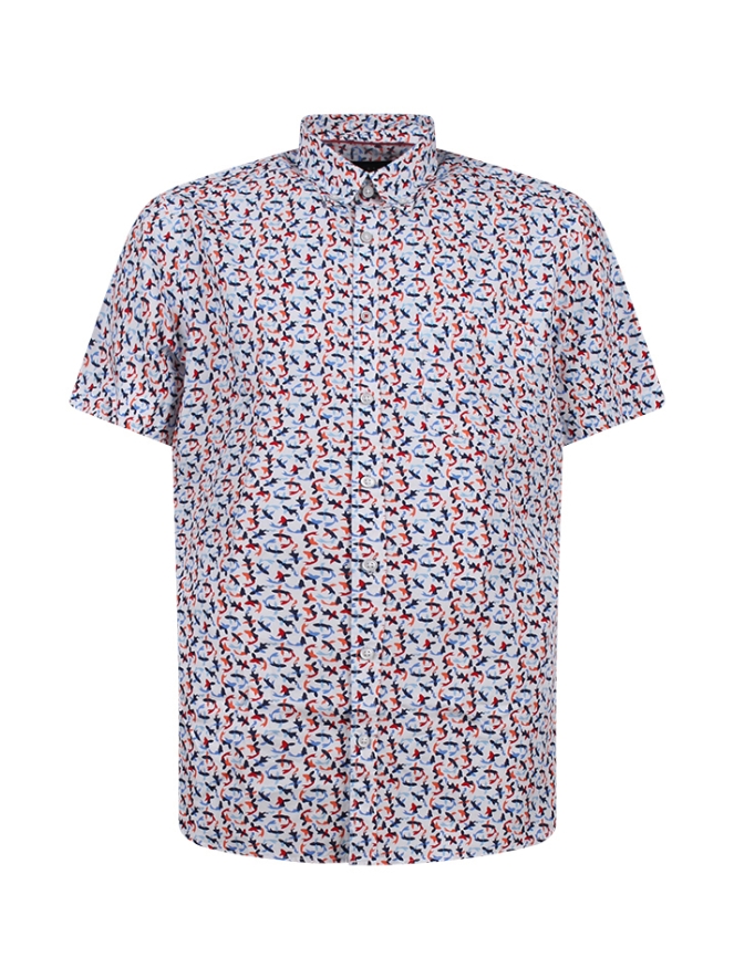 Dit herenoverhemd van Stonecast is een zomerse must-have met een speels karakter. Gemaakt van 100% katoen en uitgevoerd in een luchtige kwaliteit met een vrolijk visjesdessin, biedt dit overhemd zowel comfort als stijl. De klassieke button-down kraag, korte mouwen en regular fit zorgen voor een relaxte en verzorgde pasvorm, terwijl het subtiele borstzakje en de knoopsluiting het ontwerp compleet maken. Perfect om te combineren met een chino of short voor een casual en zomerse look. Dankzij de ademende stof is dit overhemd ideaal voor warme dagen en een frisse toevoeging aan je garderobe.