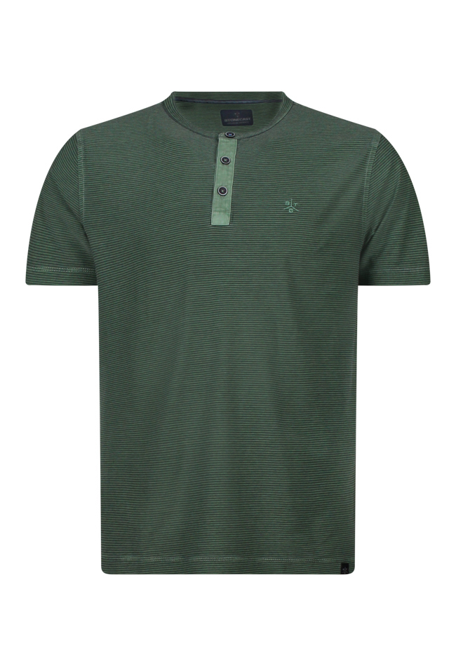 Dit shirt met serafino hals met knopen heeft een fijn streeppatroon. Van 100% katoen, draagt luchtig en comfortabel op zomerse dagen.