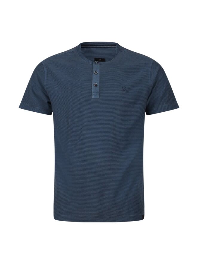 Dit shirt met serafino hals met knopen heeft een fijn streeppatroon. Van 100% katoen, draagt luchtig en comfortabel op zomerse dagen.