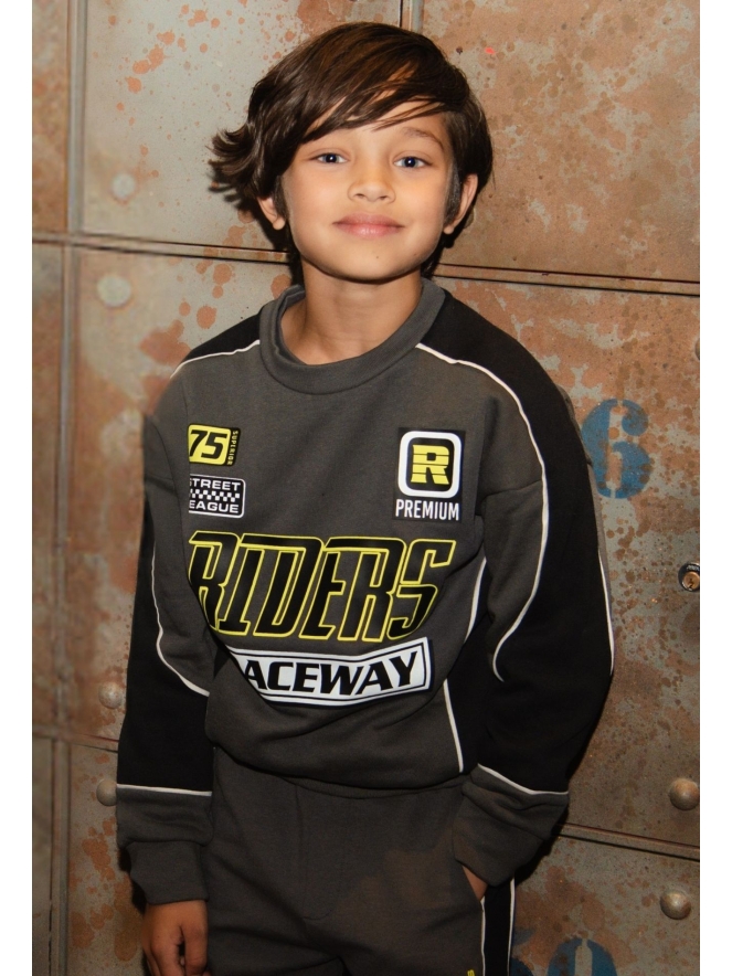 Ready, set, go! Deze sweater voor jongens is gemaakt voor snelheid en stijl. De opvallende raceprint en tekstprint geven hem een sportieve look, terwijl de contrasterende details en piping zorgen voor nét dat beetje extra. Gemaakt van zachte, comfortabele stof, perfect om in te racen, rennen of relaxen!