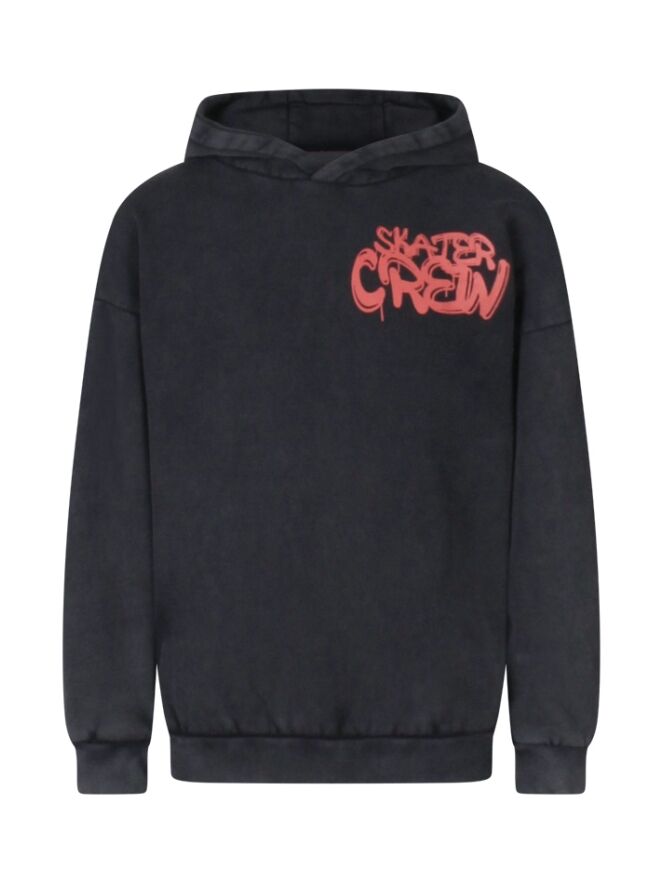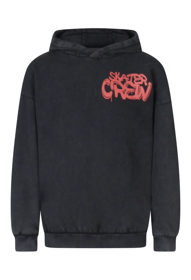 Stoere sweater met grote 'Skater crew' print op de rug. Deze sweater heeft een capuchon en combineer je gemakkelijk met een fijne spijkerbroek. Stoer, tijdloos en trendy!