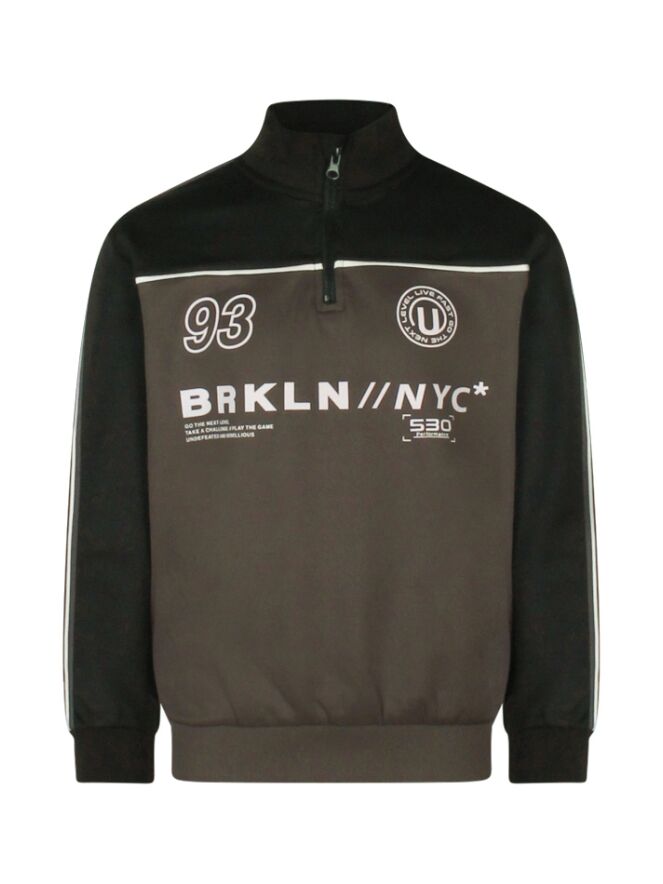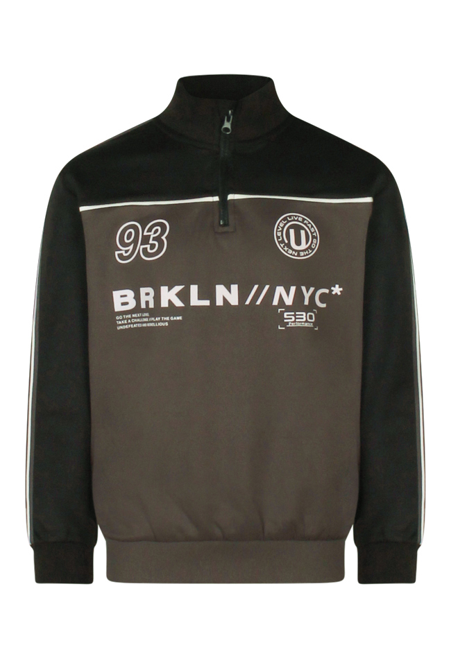 Sportieve vibes met een stoere twist! Deze jongenssweater heeft een korte rits voor een coole, moderne uitstraling. De print voegt extra detail toe, en de sportieve streep die over de mouw loopt maakt de look helemaal compleet.