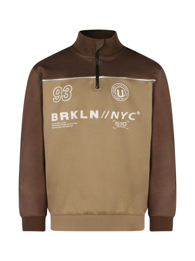 Sportieve vibes met een stoere twist! Deze jongenssweater heeft een korte rits voor een coole, moderne uitstraling. De print voegt extra detail toe, en de sportieve streep die over de mouw loopt maakt de look helemaal compleet.