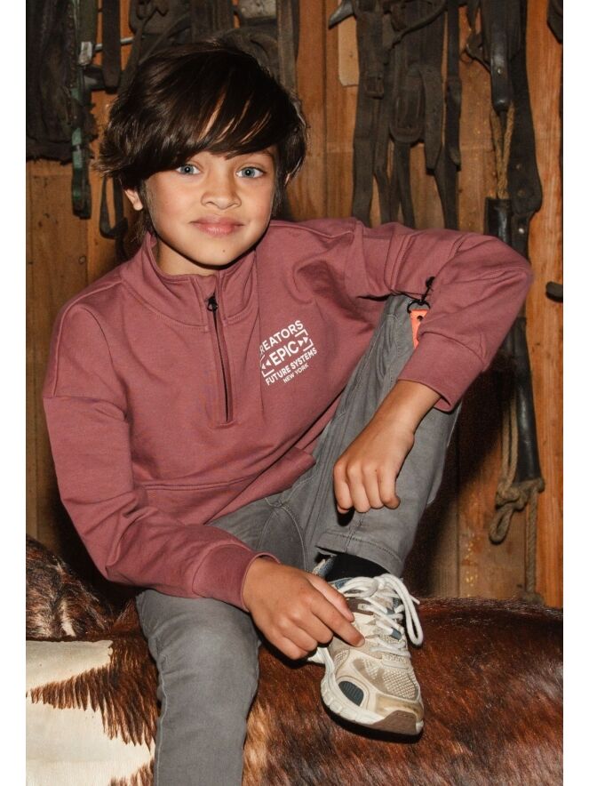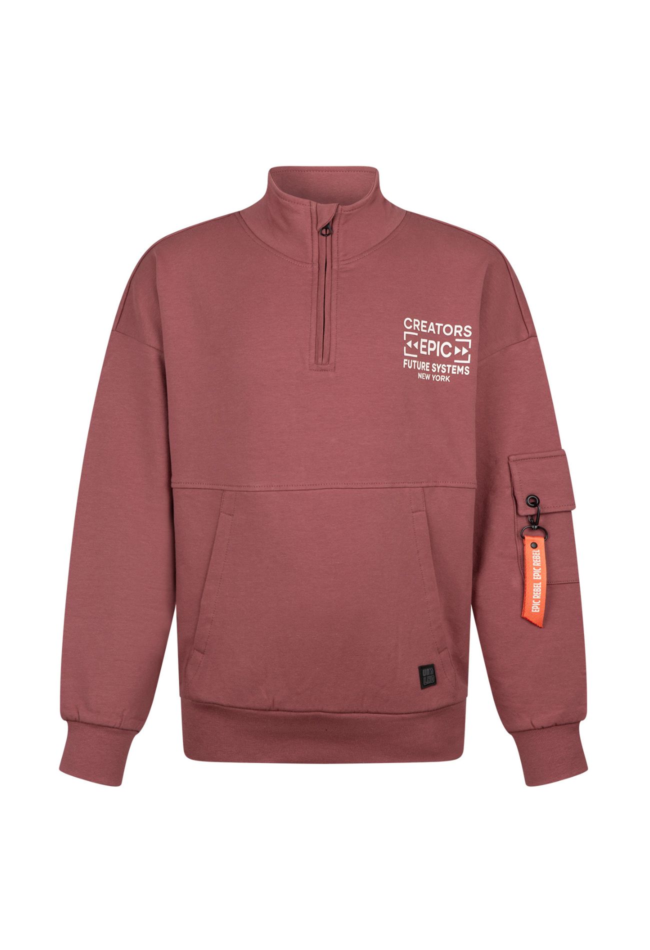 Trendy vest met leuke details zoals het kangeroevak voorop, de korte rits en de print voor en achterop. Dit sweatervest laat zich makkelijk combineren met jeans!