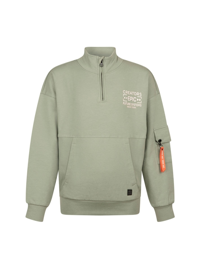 Trendy vest met leuke details zoals het kangeroevak voorop, de korte rits en de print voor en achterop. Dit sweatervest laat zich makkelijk combineren met jeans!