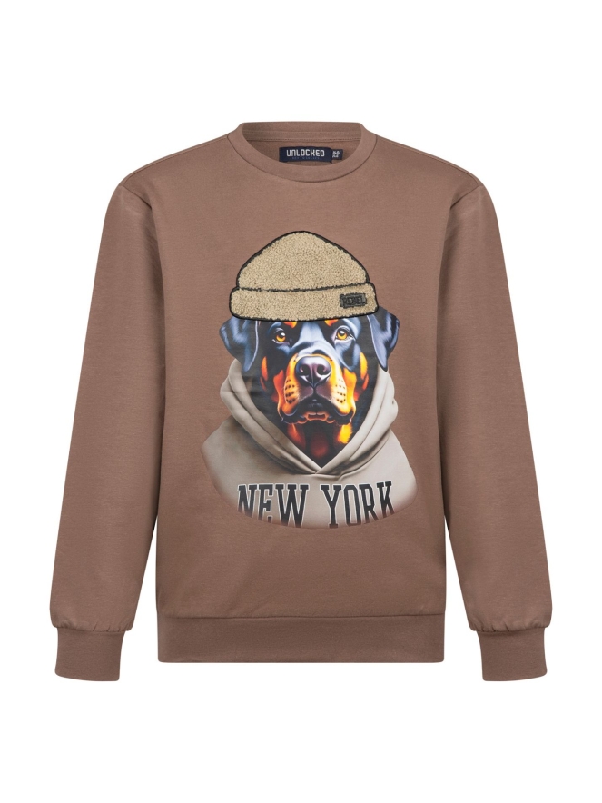 Alle dierenvrienden opgelet! Deze sweater wil je gewoon! Met mooie print van een Rottweiler met een petje op! Super leuk toch!!
