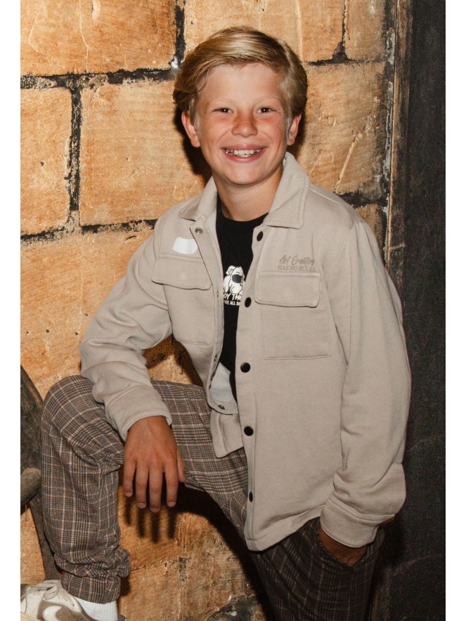 Lekker zacht overhemd van sweat stof met klepzakjes en een tekstprint op de rug. Draag er een effen T-shirtje onder op een mooie jeans en je bent ready to go!