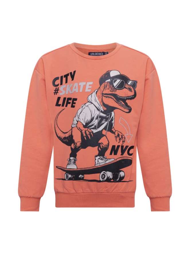 Deze sweater is stoer en comfortabel met een leuke twist! De opvallende dinoprint op de voorkant geeft een speels karakter, terwijl de zachte stof en relaxte pasvorm zorgen voor ultiem draagcomfort. Perfect voor een casual dag met een knipoog!