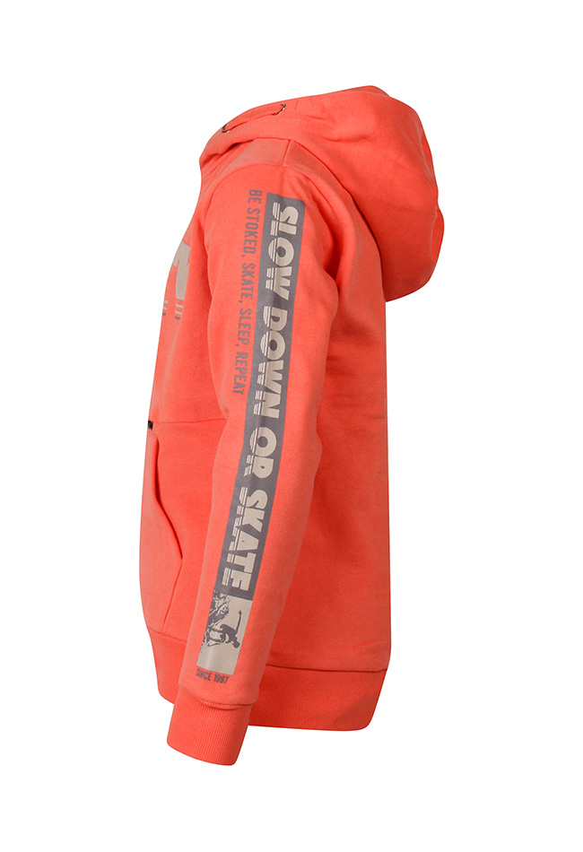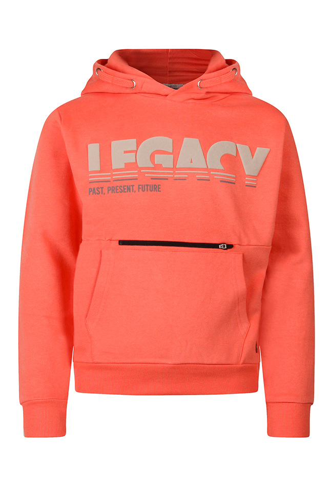 He, dit is een leuke hoody sweater! Met een print voorop en op de mouw heeft deze zachte trui naast zijn kangeroezak nog een extra ritsvak voorop! Legacy, past, present, future!