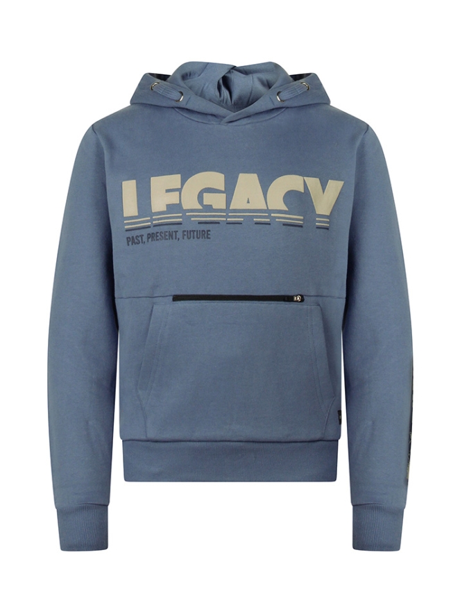 He, dit is een leuke hoody sweater! Met een print voorop en op de mouw heeft deze zachte trui naast zijn kangeroezak nog een extra ritsvak voorop! Legacy, past, present, future!