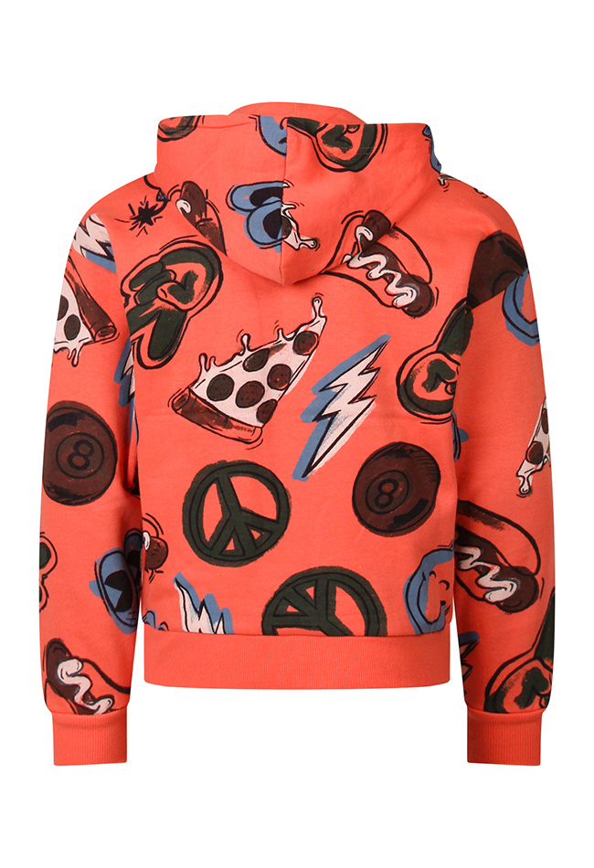 Streetstyle alert! Deze jongens hoodie heeft een all-over graffitidessin met coole prints zoals een peace-teken, pizza slice en nog veel meer. Gemaakt van zachte sweatstof en voorzien van een capuchon voor een extra stoere look. Perfect voor boys die houden van kleur, fun en comfort in een outfit. Lekker opvallend en heerlijk om te dragen!