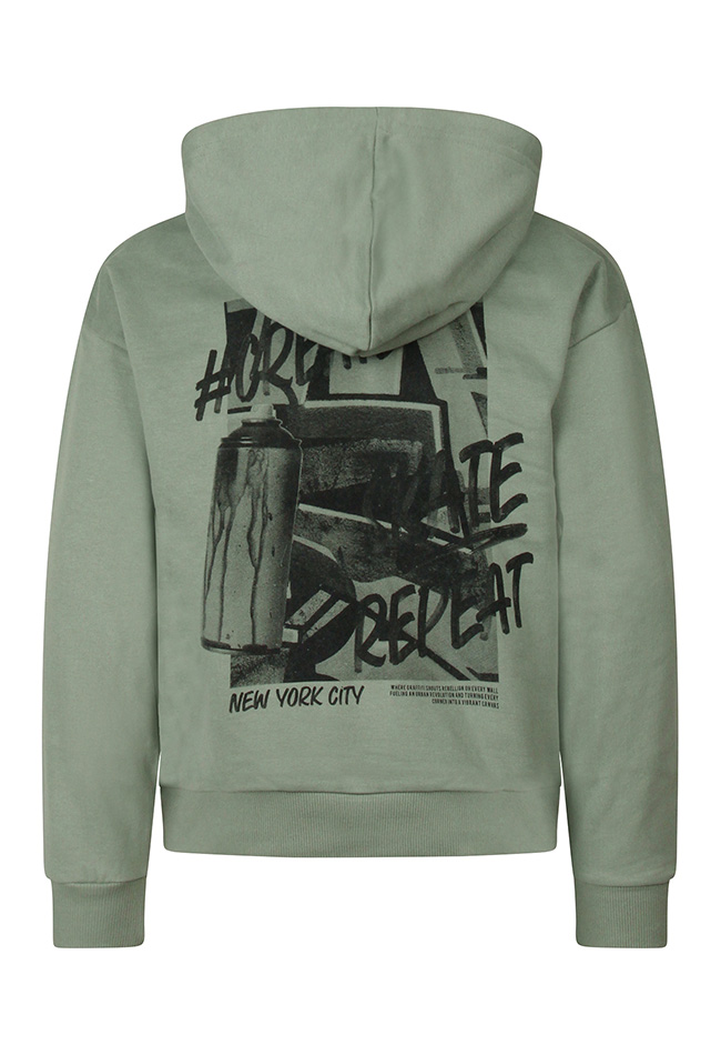 Fijne hoody sweater met voor en achterop een graffiti print. Deze sweater doet het erg goed op een spijkerbroek. Makkelijker kunnen we het niet maken!