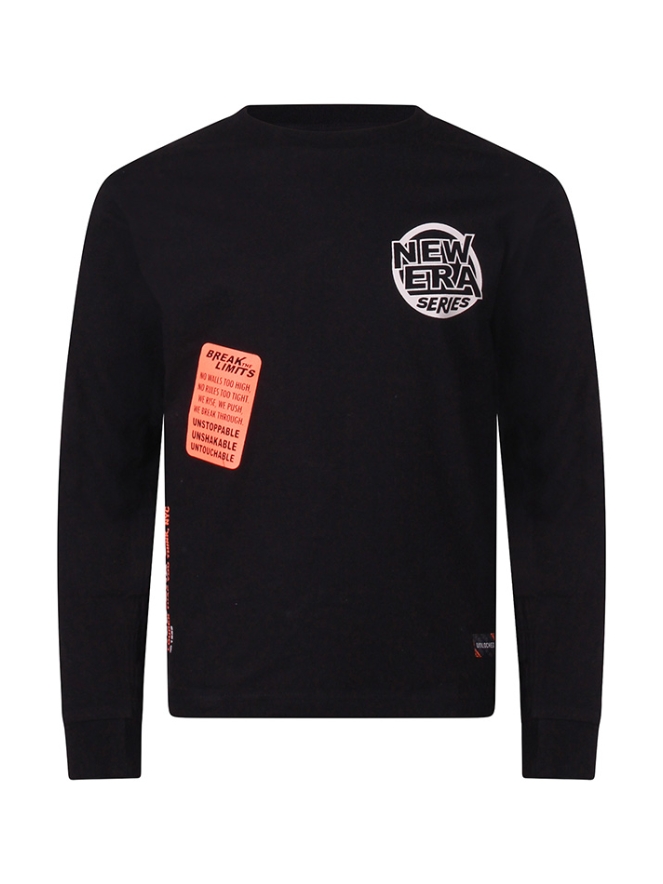 Fijn shirt met vele opdrukken zoals op de mouwen, voorop en een kleine opdruk achterop. Makkelijk te combineren met spijkerbroeken. Voor een casual look met een vleugje stoer!