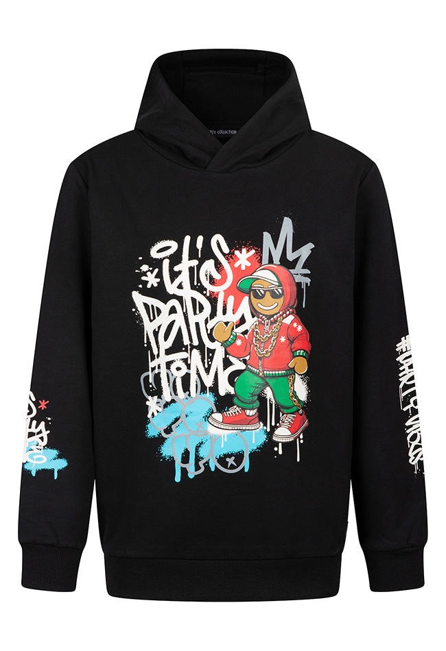 Deze jongens hoodie is gemaakt van zachte sweatstof en heeft een stoere graffitiprint op de voorkant, met bijpassende tekstprints op de mouwen: #partyvibes en "It's party time". De capuchon maakt hem extra comfortabel. Combineer met een jeans voor een coole, feestelijke look.