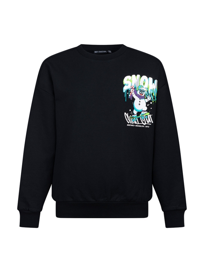 Sweater voor jongens met een vrolijke sneeuwpopprint op de achterkant en een kleinere print op de voorkant. Comfortabel en stijlvol, perfect voor de winterdagen.