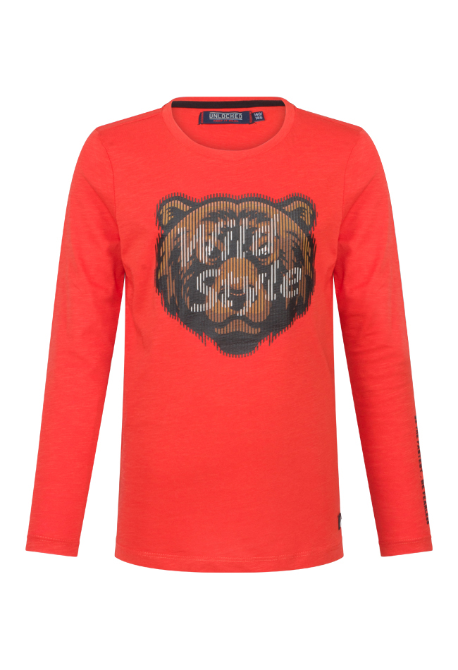 T-shirt met lange mouw van Unlocked. Het t-shirt heeft een beren print met tekst van rubber achtig materiaal. Materiaal: 100% katoen. Wassen op 30 graden, niet bleken, niet in de droger, niet strijken.