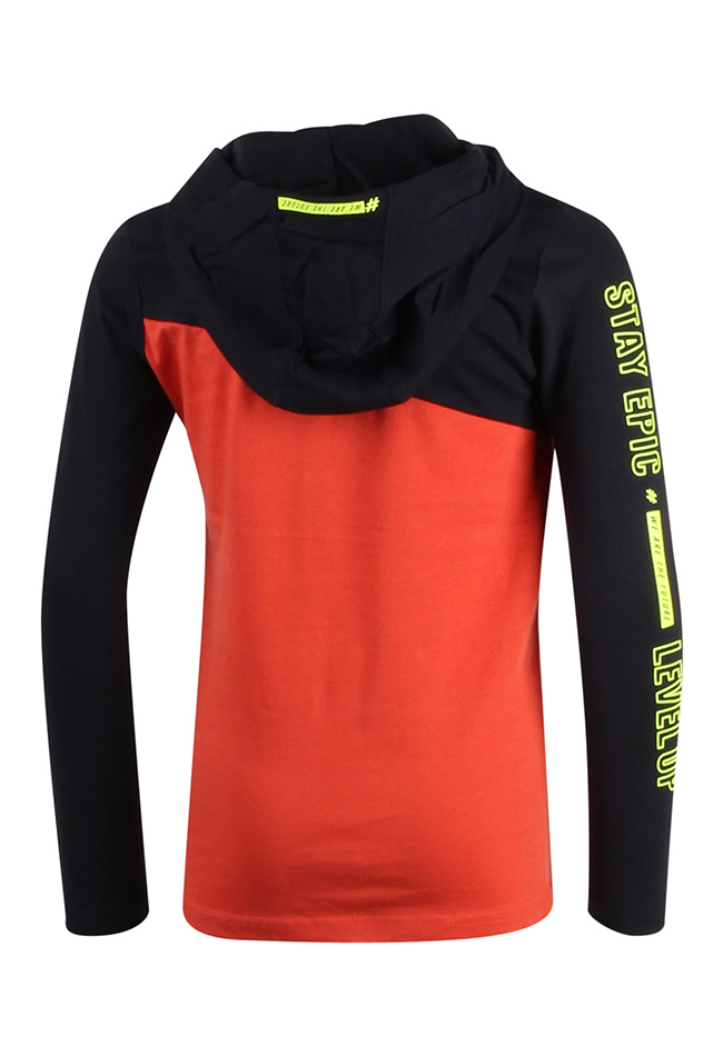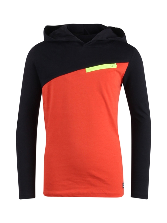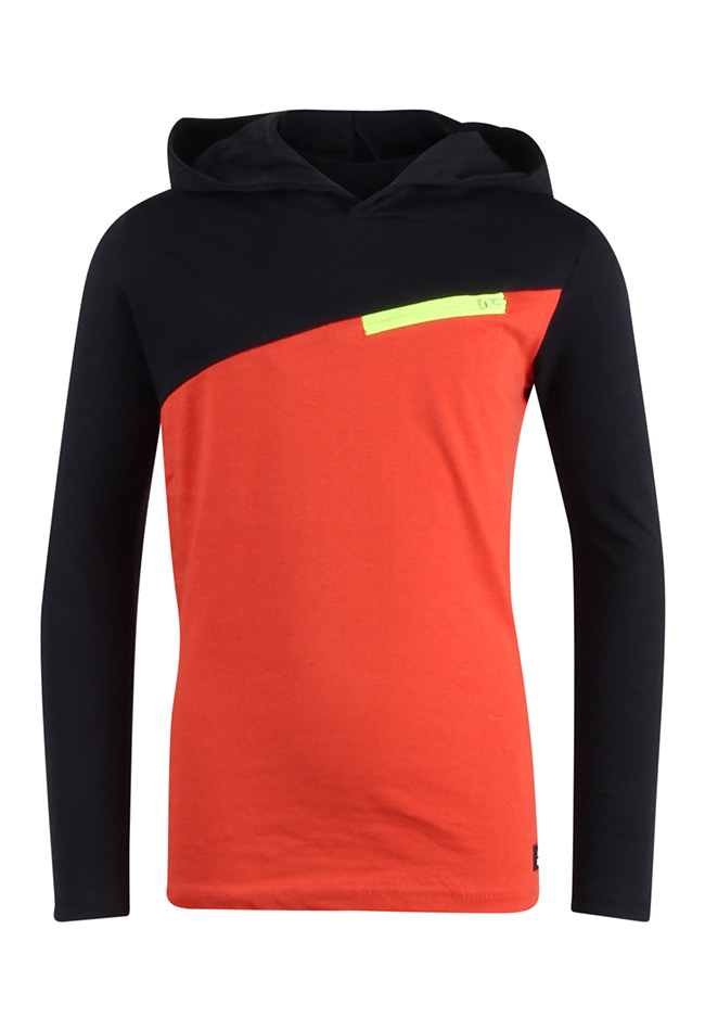 T-shirt met capuchon van Unlocked. Het shirt heeft een color block design en een ritszakje op de voorkant. Op een van de mouwen en de capuchon staat een tekst. Materiaal: 100% katoen. Wassen op 30 graden, niet bleken, niet in de droger, kan gestreken worden.