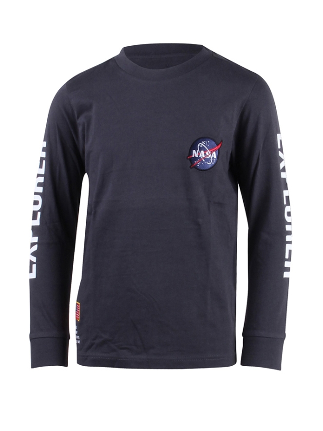 T-shirt met lange mouw van Unlocked. Het t-shirt heeft een NASA print op de voorkant en mouwen. Materiaal: 100% katoen. Wassen op 30 graden, niet bleken, niet in de droger, kan gestreken worden.