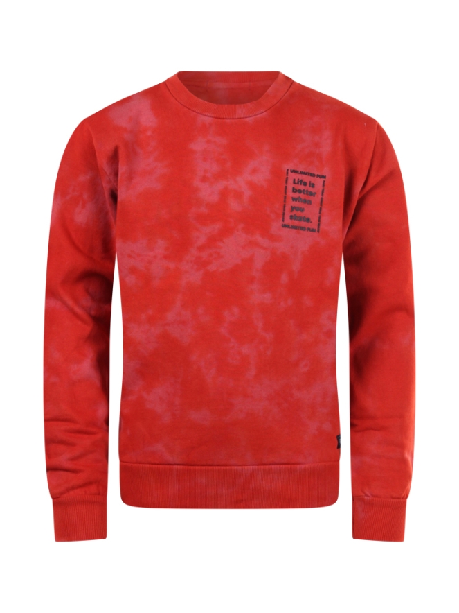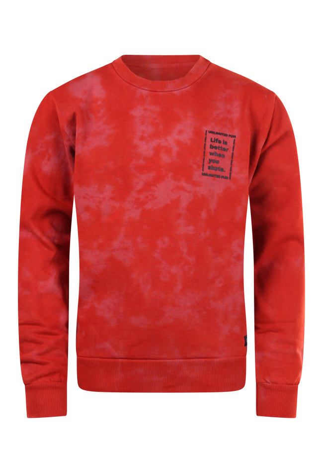 Trui van Unlocked. De trui heeft een tie dye look en een kleine tekst print op de voorkant. Materiaal: 100% katoen. Wassen op 30 graden, niet bleken, niet in de droger, kan gestreken worden.