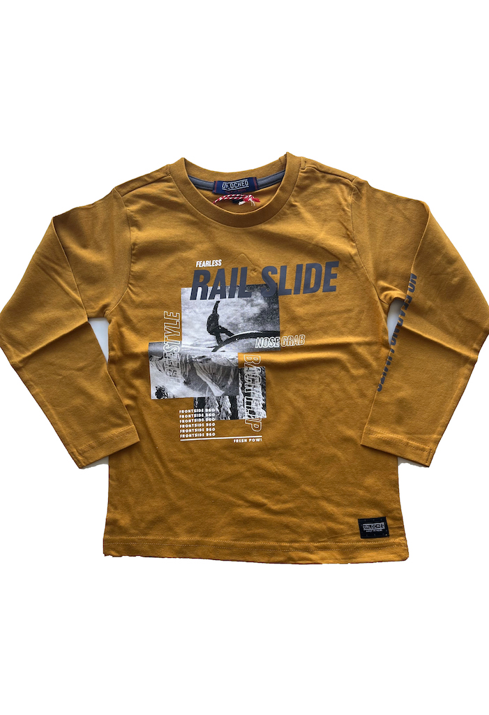 T-shirt met lange mouw van Unlocked. Het t-shirt heeft een snowboard foto en tekst print. Op de mouw staat ook een tekst. Materiaal: 100% katoen. Wassen op 30 graden, niet bleken, niet in de droger, kan gestreken worden.