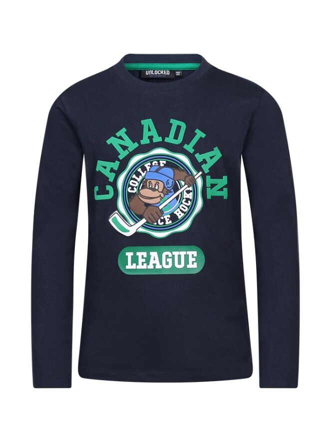 Shirt met lange mouw en een ronde hals. Met college print op de voorzijde.