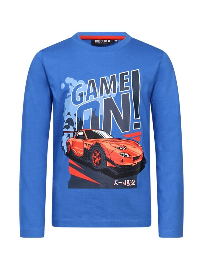 Shirt met lange mouwen en een GAME ON print met race auto.