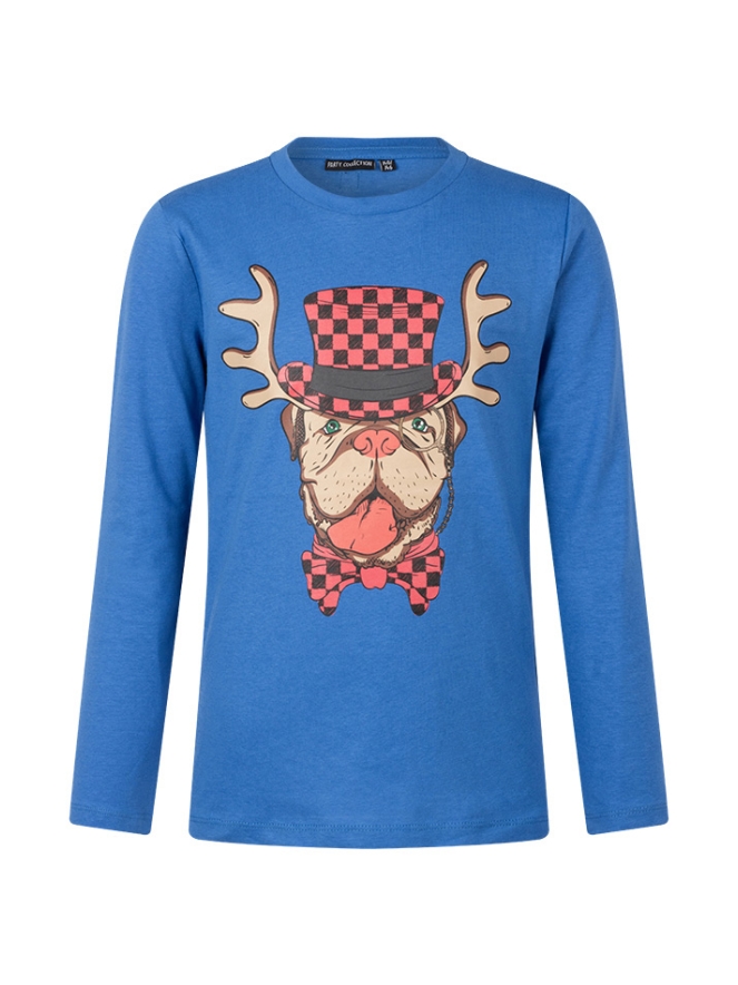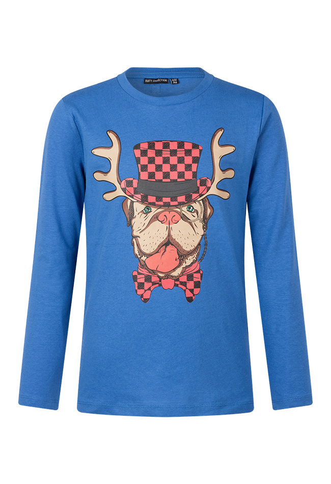 Dit shirt uit onze feest collectie heeft een print met een dier in kerstsfeer.