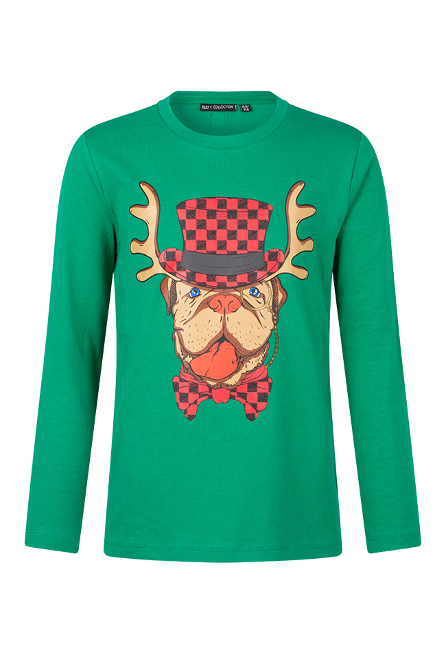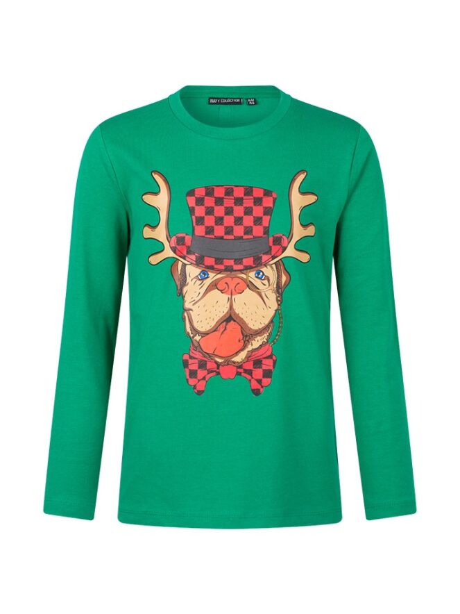 Dit shirt uit onze feest collectie heeft een print met een dier in kerstsfeer.