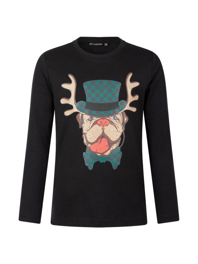 Dit shirt uit onze feest collectie heeft een print met een dier in kerstsfeer.