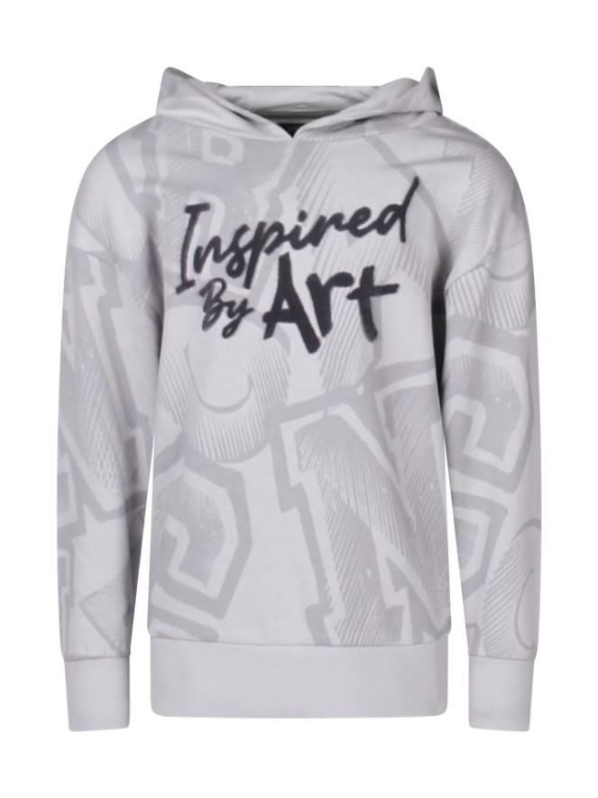 Deze hoodiesweater heeft een allover print en de tekst Inspired by Art voorop. Deze letter zijn lekker zacht en steken wat uit. Leuk te combineren met iedere spijkerbroek en sneaker of stoere boots.