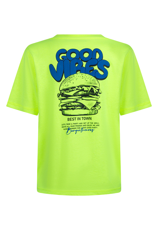 Geef elke outfit een speelse en trendy uitstraling met dit stoere jongens T-shirt van Unlocked. Dit shirt is uitgevoerd in een comfortabele regular fit met een licht boxy effect, waardoor het perfect zit en makkelijk te combineren is met elke casual look. Het T-shirt heeft een zachte feel en ademend draagcomfort, ideaal voor dagelijks gebruik. Op de borst vind je een opvallende puffprint van een burger met de tekst 'Good Vibes'. De achterkant maakt echt een statement met een grote foodprint van een burger en dezelfde vrolijke tekst. Dankzij de ronde hals en korte mouwen heeft dit shirt een tijdloze en veelzijdige uitstraling. Perfect voor jongens die houden van een coole, casual stijl met een speelse twist.