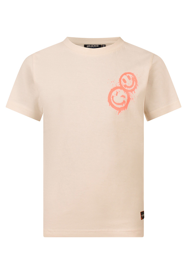 Maak elke outfit vrolijk en opvallend met het Unlocked jongens T-shirt. Dit comfortabele 100% katoenen shirt heeft een regular fit en korte mouwen, ideaal voor dagelijks gebruik. De ronde hals zorgt voor een klassieke look en een comfortabele pasvorm. Wat dit T-shirt echt uniek maakt, is de fun print: op de voorkant vind je twee kleine smileys met spetters op de borst, terwijl de achterkant pronkt met een grotere smiley met spetters. Perfect voor jongens die houden van een speelse en kleurrijke stijl.