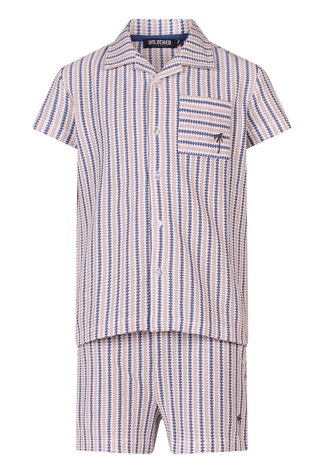 2-delige set bestaande uit een bloesje en korte broek, uitgevoerd in een fijn verticale breistructuur voor een schattige en comfortabele look.