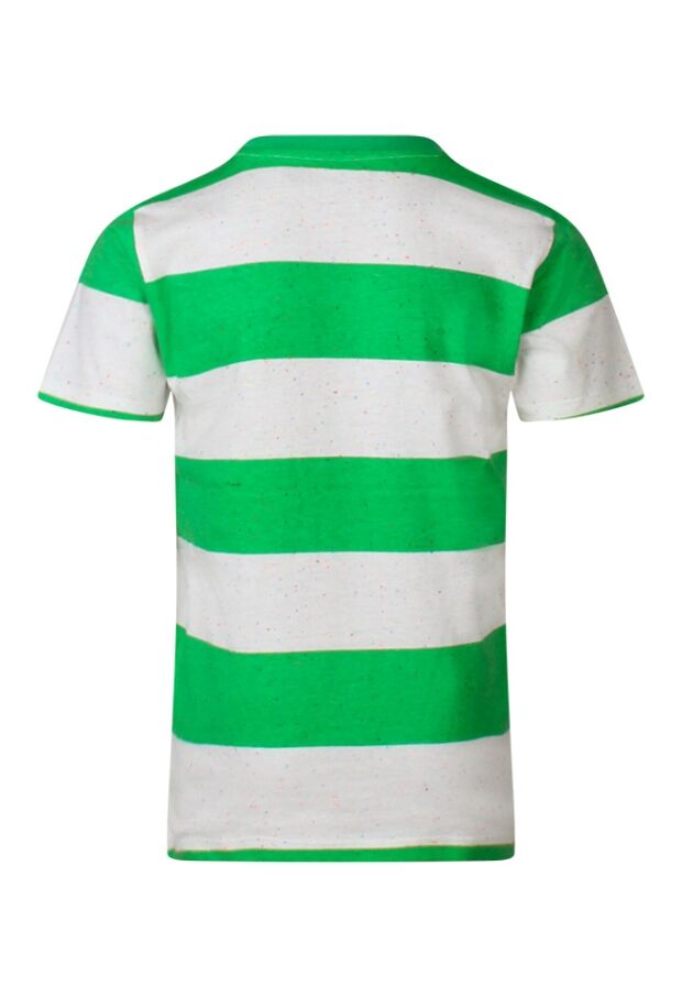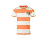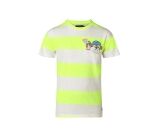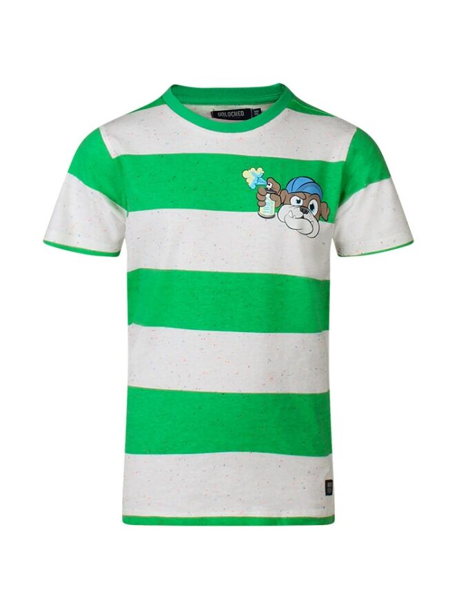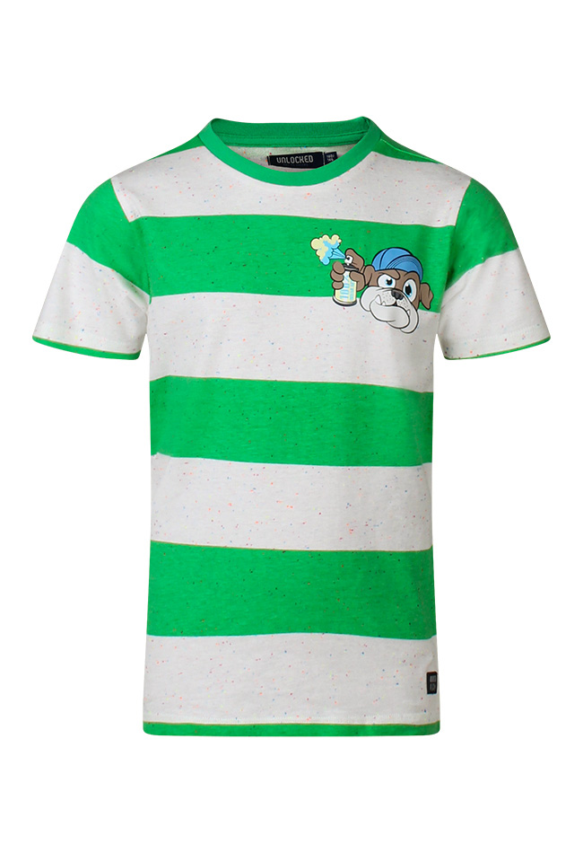 Dit T-shirt heeft een streepprint met op de borst een print van een graffiti hond.