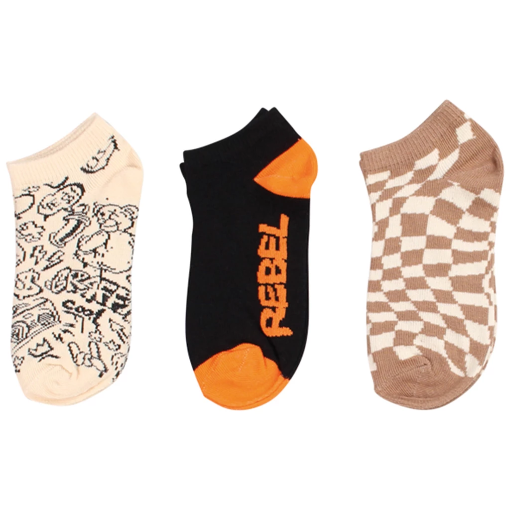 Deze sneakersokken in 3-pack hebben een graffiti en blokjesprint.