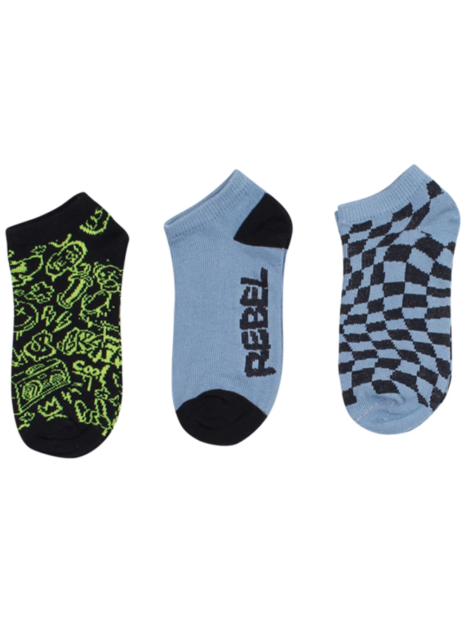 Deze sneakersokken in 3-pack hebben een graffiti en blokjesprint.