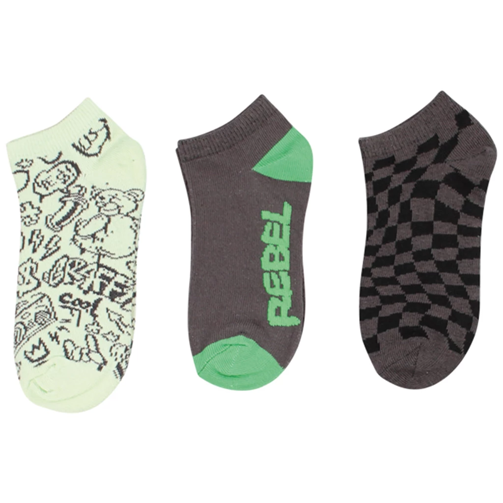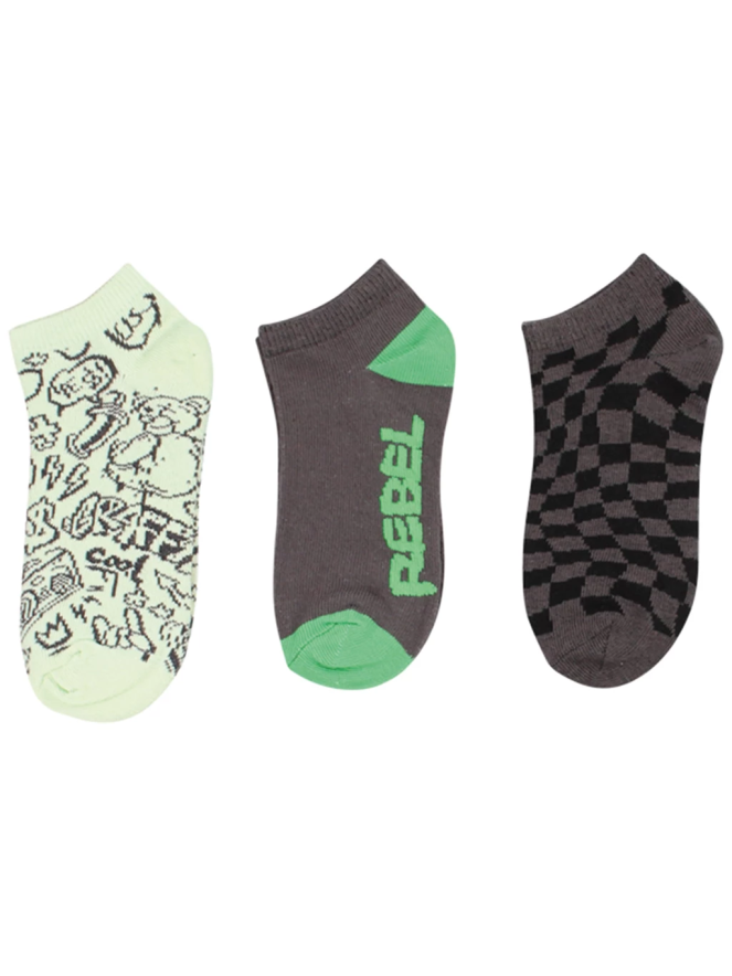 Deze sneakersokken in 3-pack hebben een graffiti en blokjesprint.