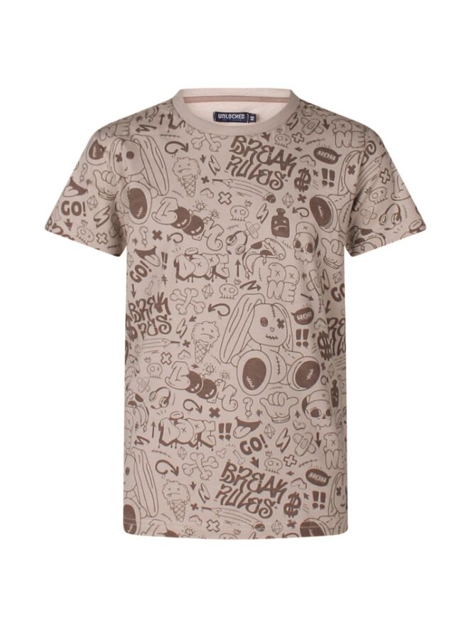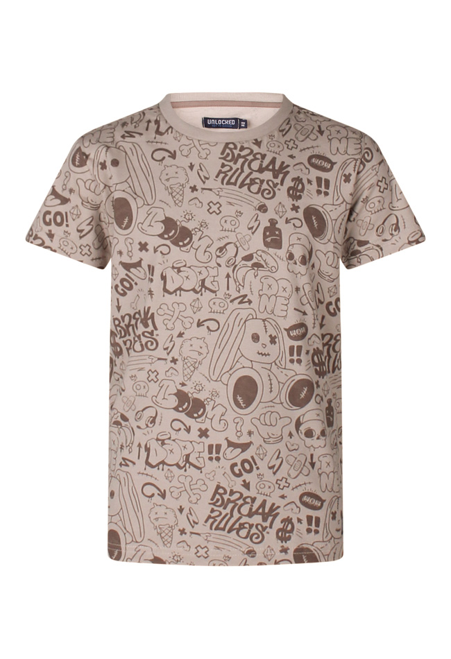 Stoer T-shirt van Unlocked met een allover graffiti print. Voor een stoere look makkelijk te combineren met een spijkerbroek en sneakers.