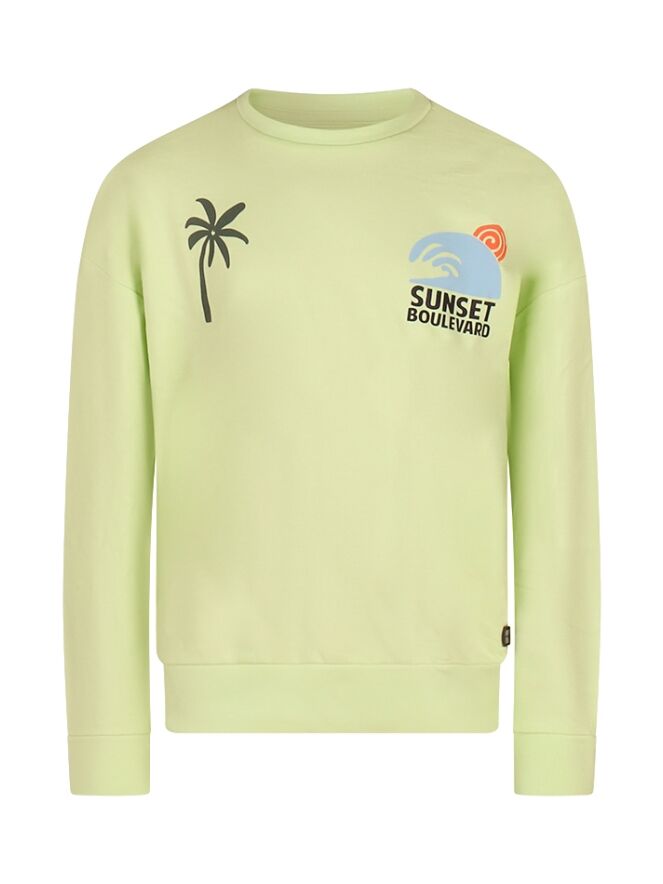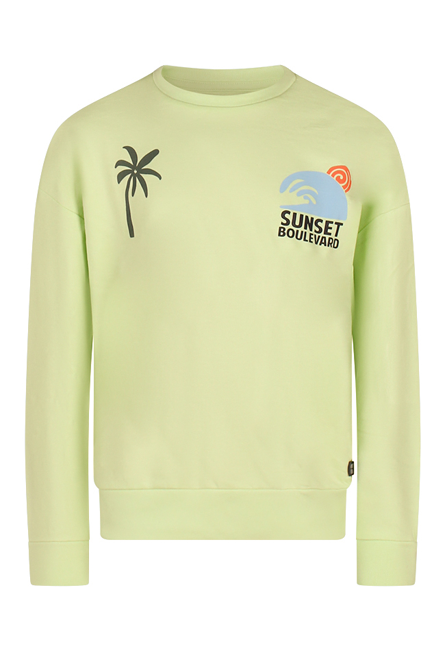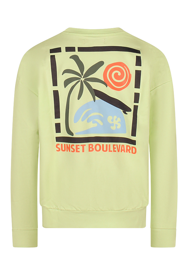 Sunset boulevard here we come! Deze heerlijke sweater met beachy print en look maakt jou de beachboy van de dag! Deze trui heeft een boxy fit en valt dus wijder voor een comfortabele fit en look!