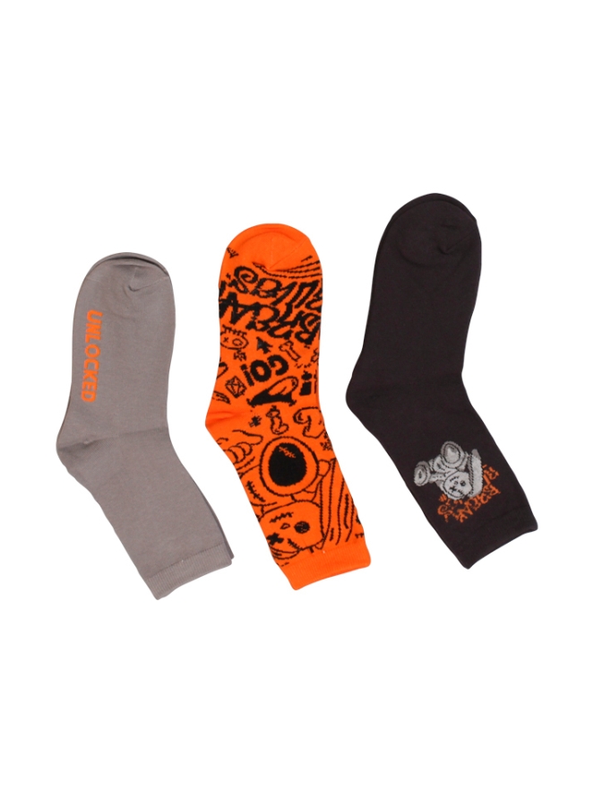 3-Pack sokken voor jongens met 1 paar effen sokken en 2 paar met afbeelding beer.